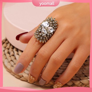 [YM] Nhẫn Đồng Sáng Bóng Đính Kim Cương Giả Lấp Lánh Phụ Kiện Trang Sức Cho Nữ