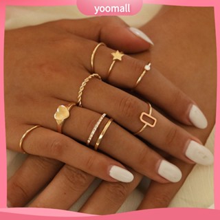 Set 8 Nhẫn Mạ Điện Họa Tiết Ngôi Sao Năm Cánh Đính Đá Thời Trang