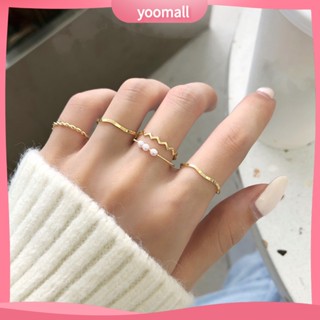 Bộ 5 Nhẫn Đính Ngọc Trai Giả Phong Cách Hàn Quốc / Nhật Bản / Nhật Bản Độc Đáo Thời Trang Dự Tiệc Cưới