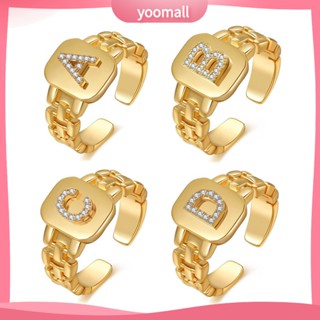 Nhẫn Unisex Bản Rộng Họa Tiết 26 Chữ Cái Đính Đá Có Thể Điều Chỉnh