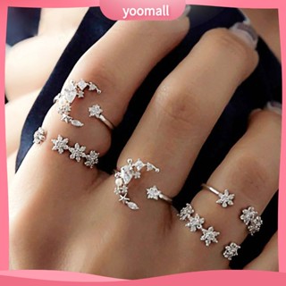 Bộ 5 Nhẫn Hợp Kim Đính Đá Trọng Lượng Nhẹ Thời Trang