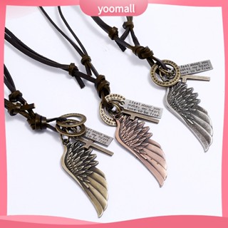 [YM] Vòng Cổ Dây Da Bò Mặt Hình Cánh Thiên Thần Có Thể Điều Chỉnh Phong Cách Punk Vintage Trang Sức Hàng Ngày Cho Nam