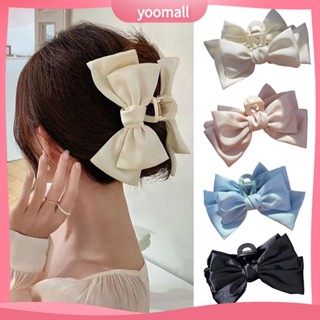 Kẹp Tóc Thắt Nơ Ruy Băng Màu Trơn Hai Lớp Chống Trượt Trọng Lượng Nhẹ Cho Nữ