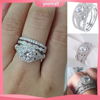 Bộ 3 Nhẫn Đính Hôn Đính Đá Lấp Lánh Tinh Tế Sáng Tạo Phổ Biến