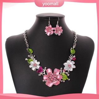 Bộ Vòng cổ + Bông Tai Đính Đá Hình Hoa Nhiều Màu Cho Nữ