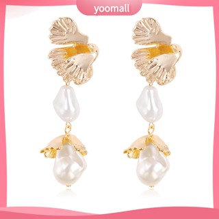 [YM] Bông Tai Hình Hoa Đính Ngọc Trai Bằng Hợp Kim Phong Cách Âu Mỹ Cá Tính Dành Cho Nữ