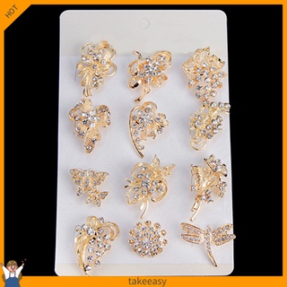 [Hàng Có Sẵn] Bộ 12 Trâm Cài Áo Hình Hoa Và Bướm Đính Kim Cương Giả