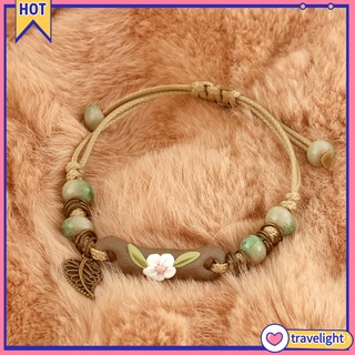 Vòng Tay Dây Bện Phối Hạt Sứ Họa Tiết Hoa Lá Thời Trang Có Thể Điều Chỉnh Cho Nữ