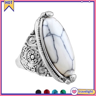 (Travelight) Nhẫn Mạ Bạc Đính Đá Ngọc Lam Phong Cách Boho Cổ Điển K1