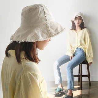 Nón Tai Bèo Rộng Vành Che Nắng Bằng Cotton Màu Trơn Đính Nơ Thời Trang