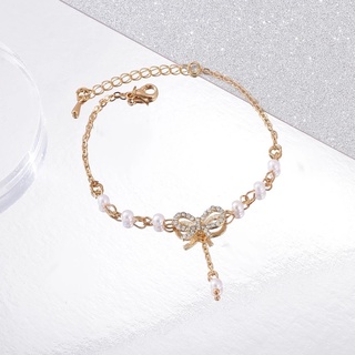 Vòng tay hợp kim mỏng trang trí nơ đính ngọc trai thời trang cho nữ