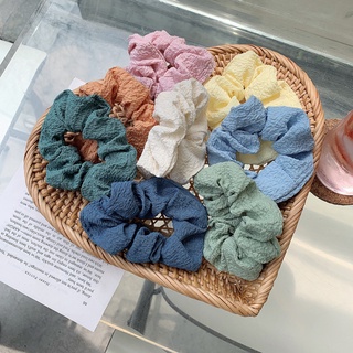 Dây buộc tóc vải satin xếp nếp co giãn màu kẹo đơn giản thời trang cho nữ