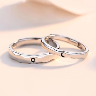 Nhẫn cưới màu bạc họa tiết mặt trăng/ mặt trời thời trang dành cho cặp đôi