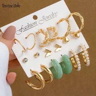 Set 9 Đôi Khuyên Tai Tròn Nhiều Kiểu Dáng Dễ Thương Cho Nữ