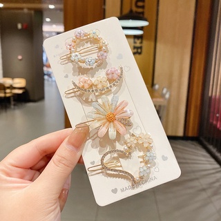 Kẹp Tóc Đính Đá Hình Trái Tim/Mặt Trăng/Hoa Cúc Đơn Giản Thanh Lịch Cho Nữ
