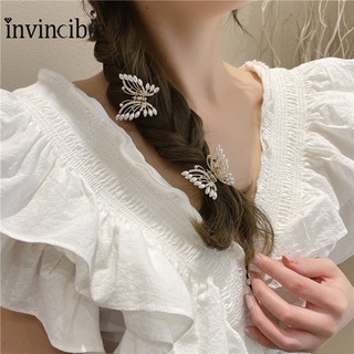 Kẹp Tóc Hình Bướm Rỗng Bằng Kim Loại Đính Ngọc Trai Thời Trang Hàn Quốc
