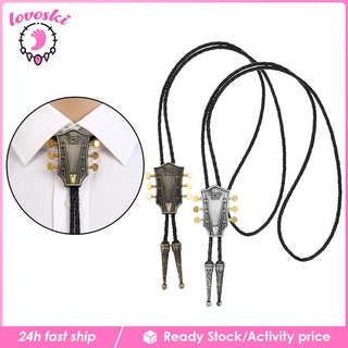 Vòng cổ Da PU Phối Mặt Hình Đầu Đàn Guitar Bằng Đồng Phong Cách Cao Bồi Phương Tây