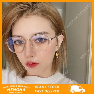 (HENGHA) Kính Mát Gọng Vuông Đôi Bằng Kim Loại Chống Ánh Sáng Xanh Lam Phong Cách INS