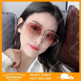 (HENGHA) Kính Râm Thời Trang Vintage Phương Tây Khung Vuông Oversize Che Nắng