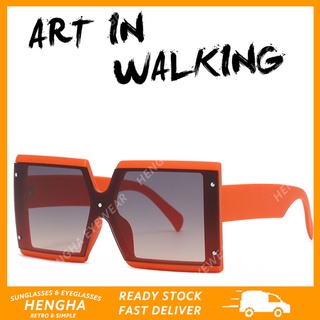 (HENGHA) Kính Râm Nửa Gọng Vuông Kim Loại Thời Trang Hàn Quốc Cổ Điển Cho Nữ