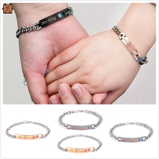 1 Cặp Vòng Tay Bằng Hợp Kim In Chữ Her King His Queen Cho Cặp Đôi