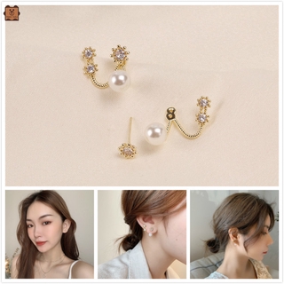 Khuyên Tai Kim Loại Đính Ngọc Trai Nhân Tạo Phong Cách Hàn Quốc Cho Nữ