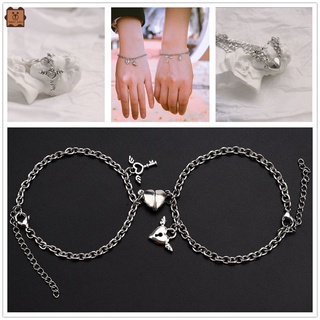 Set 2 vòng tay thép titan hình ổ khóa trái tim thiết kế đơn giản cho cặp đôi