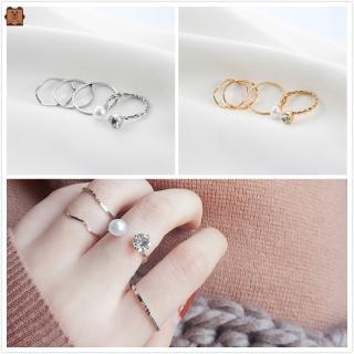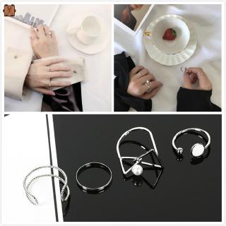 Set 4 chiếc nhẫn hở kiểu dáng hình học đính ngọc trai có thể điều chỉnh cho nữ