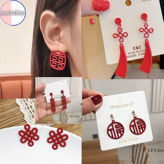 Khuyên Tai Nữ Trang Dáng Dài Tạo Hình Độc Đáo Hoa tai nút thắt của Trung Quốc