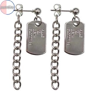 Khuyên tai gắn chuỗi xích và mặt họa tiết chữ phong cách Hàn Quốc đơn giản cho nam nữ