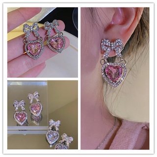 Bông Tai Hình Trái Tim Đính Đá Zircon Màu Hồng Phong Cách Cổ Điển Thời Trang Cho Nữ