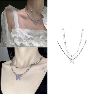 vòng cổ Hai Lớp Mặt Hình Bướm Phong Cách Hip Hop