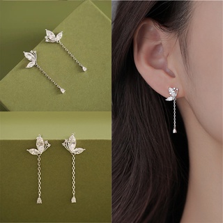 Đôi Khuyên Tai Dáng Dài Đính Bướm Pha Lê Xinh Xắn