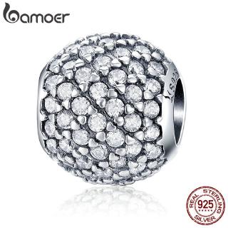 Hạt trang sức Bamoer SCC733 bằng bạc 925 hình tròn đính pha lê CZ làm trang sức cho nữ