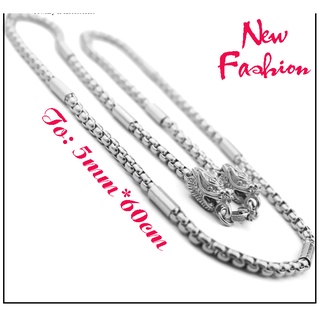 Dây chuyền nam inox kiểu ống trúc 5mm bọc đầu rồng màu trắng sáng đẹp, không đen - Thể hiện đẳng cấp phái mạnh