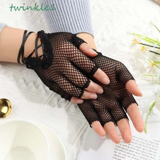 Găng Tay Lưới Hở Ngón Màu Đen Phong Cách Harajuku Punk Cho Nữ