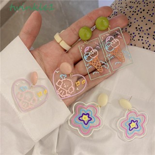 Bông Tai Acrylic Lấp Lánh Hình Trái Tim / Chú Chó Trong Suốt Dễ Thương Thời Trang