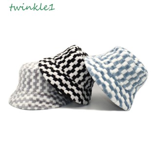 Mũ Bucket Len Cừu Họa Tiết Sọc Caro Phong Cách Thời Trang Thu Đông Cho Nữ