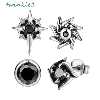 1 Cặp Bông Tai Lấp Lánh Màu Đen|Khuyên Tai Đinh Ốc Bằng Thép Không Gỉ Nhiều Màu Sắc