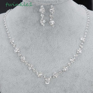 Bộ Vòng cổ + Bông Tai Đính Đá Lấp Lánh|Set Đồ Cô Dâu Thiết Kế Sang Trọng Thanh Lịch