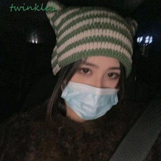 Mũ Len Lấp Lánh Họa Tiết Kẻ Sọc Dễ Thương Thời Trang Đường Phố Mùa Đông Cho Nữ