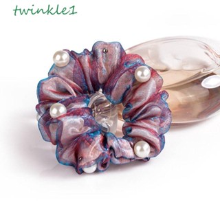 TWINKLE Dây Cột Tóc Cao Su Co Giãn Phối Lưới Lấp Lánh Phong Cách Vintage Thanh Lịch Cho Nữ