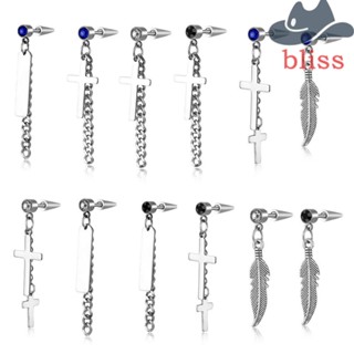 Khuyên Tai Thép Titan Hình Lông Vũ Phong Cách Punk Cho Nam|Bông Tai Đính Đá Thời Trang Dành Cho Nữ