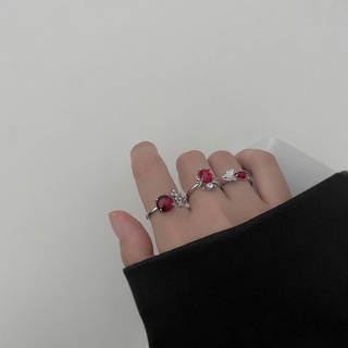 Nhẫn mặt hình hoa và bướm màu đỏ thiết kế hở kiểu dáng đơn giản 191180