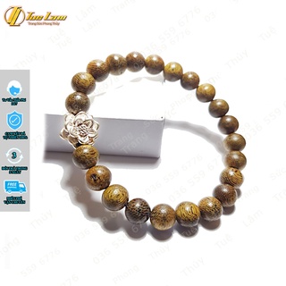 Vòng tay hạt gỗ trầm hương tốc size 8 li mix charm hoa sen bạc bình an - Tuệ Lâm