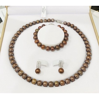 Bộ 4 món trang sức ngọc trai nhân tạo 8ly màu nâu có kiểm định