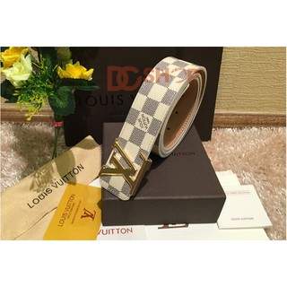 Dây nịt VL đẳng cấp Doanh Nhân kẻ caro trắng, mặt vàng - hàng hiệu đẹp
