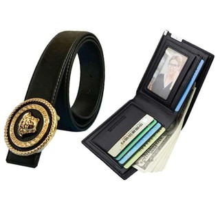 Dây thắt lưng da nam VS + Tặng ví bóp nam cao cấp , dây nịt nam mặt tròn VS268 hợp kim mạ vàng cực sang chảnh ( đen )