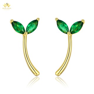 Khuyên Tai Bạc Nữ MIRASON Mầm Lá Xanh Sang Trọng MBT136 - Bông Tai Nữ Bạc 925 Cao Cấp