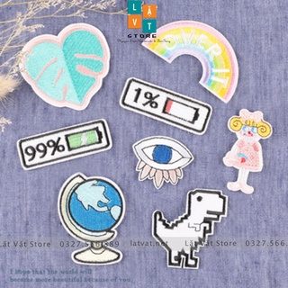 Patch ủi quần áo pixel điện tử cực kì dễ thương, dán Vali, tủ lạnh, Sticker miếng dán cá tính, xinh xắn...